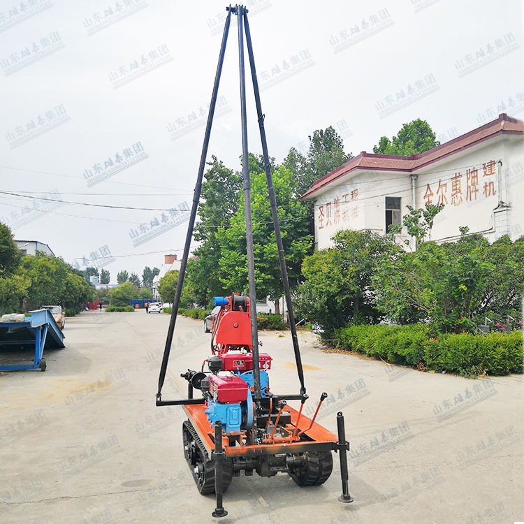 我廠生產(chǎn)的BZ-50SL型鉆機(jī),是在50系列鉆機(jī)的基礎(chǔ)上升級(jí)改造的,解決了傳統(tǒng)小型液壓鉆機(jī)鉆桿短,鉆進(jìn)時(shí)需要反復(fù)提鉆下鉆的作業(yè)模式,該機(jī)型新增了履帶底盤(pán),減輕了用戶的轉(zhuǎn)場(chǎng)負(fù)擔(dān),提高了作業(yè)效率,鉆桿取芯鉆具等放在底盤(pán)上,發(fā)動(dòng)機(jī)器就可以轉(zhuǎn)場(chǎng)了,同時(shí)增加了移機(jī)功能,鉆桿長(zhǎng)度達(dá)到2米,鉆塔高度4.5米,精簡(jiǎn)了作業(yè)流程,換桿不需要拆卸牛頭,提升了鉆進(jìn)速度。