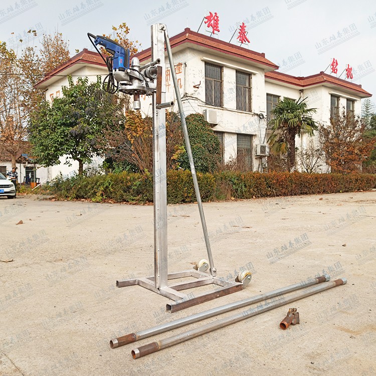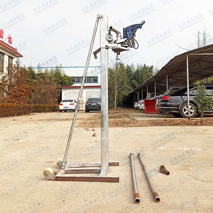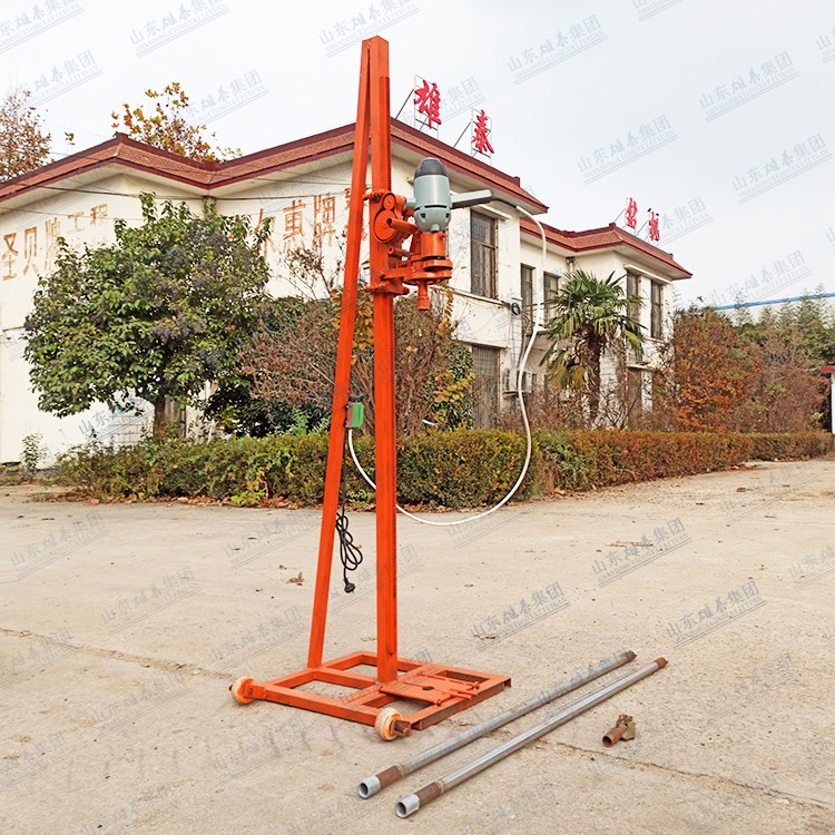 本款打井機(jī)采用了多齒輪設(shè)計(jì),雖然增加了生產(chǎn)成本和制造工藝,但這樣設(shè)計(jì)增加了打井機(jī)力量(就像汽車(chē)一檔比四檔有力、還便于掌握一樣的道理),打井有力,打井速度快、便于掌握。如果齒輪少了,一千瓦的電機(jī)還沒(méi)有七百多瓦的電機(jī)力量大、而且轉(zhuǎn)速高、打井時(shí)難于掌握。這款多齒輪結(jié)構(gòu)鉆井機(jī)經(jīng)過(guò)許多用戶(hù)多年使用,打井效果非常理想!便攜式小型民用電動(dòng)打井機(jī)廣泛應(yīng)用于家庭/工廠生活用水打井、農(nóng)田灌溉水井、安裝水空調(diào)、工地打樁等。本公司生產(chǎn)的便攜式小型民用電動(dòng)打井機(jī)機(jī)頭,可隨意選配鉆頭,鉆頭價(jià)格另算。也可另配鉆桿,鉆桿直徑是32mm、一根長(zhǎng)約1.5米。